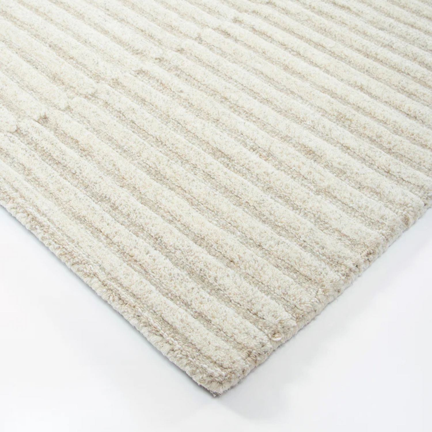 A visual and textural masterpiece, the Anni rug combines statement design with casual simplicity. Handcrafted from 100% wool, the offset linear pattern is achieved through sections of cut and looped pile, resulting in a captivating textural aesthetic. The natural sand tone effortlessly adds warmth and depth for contemporary living.