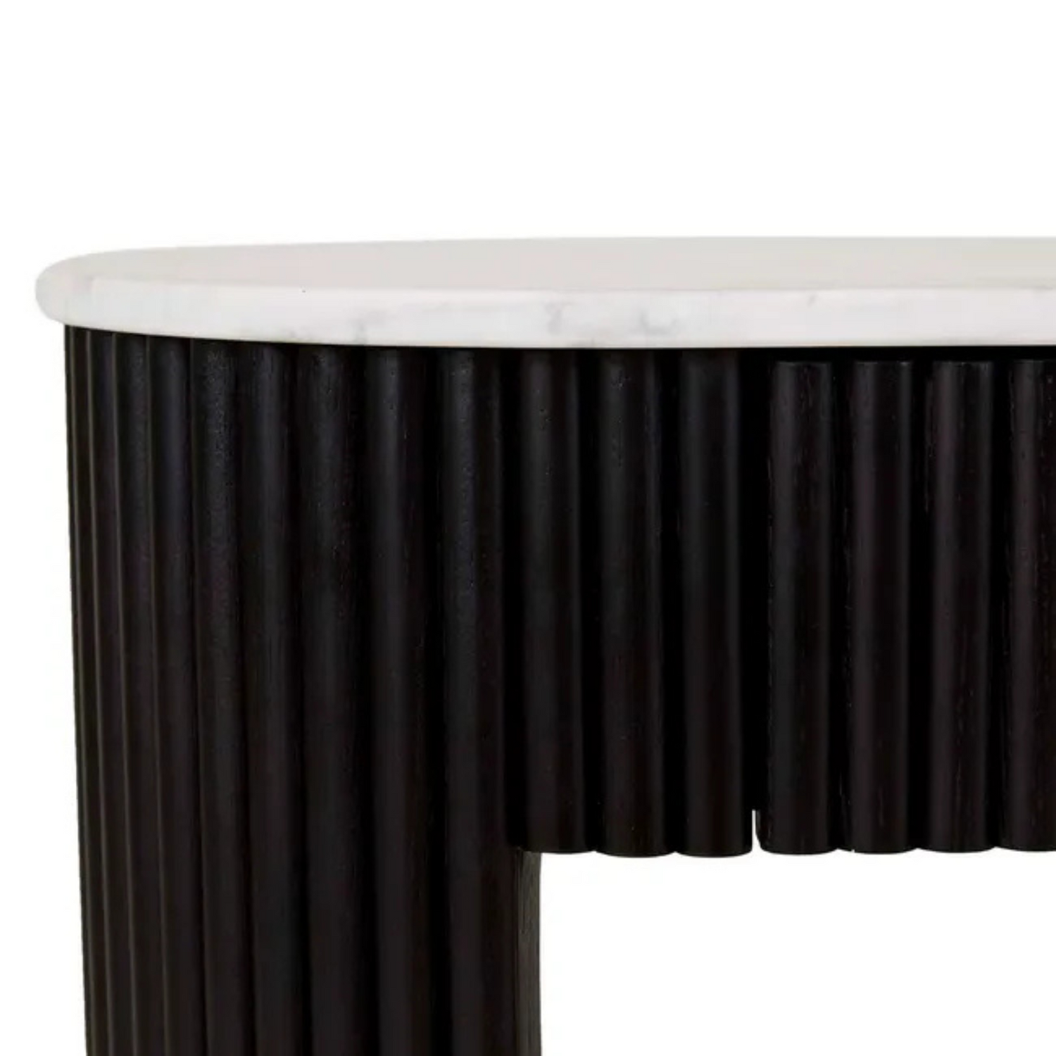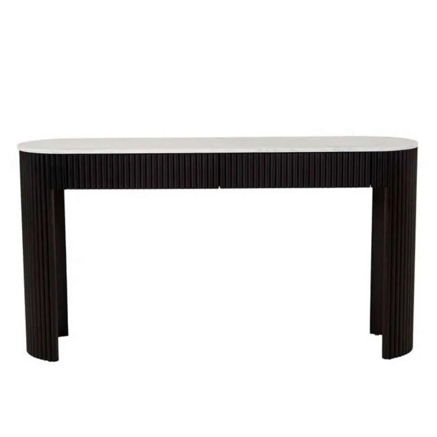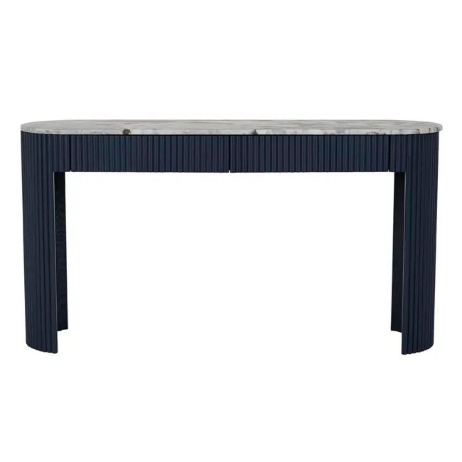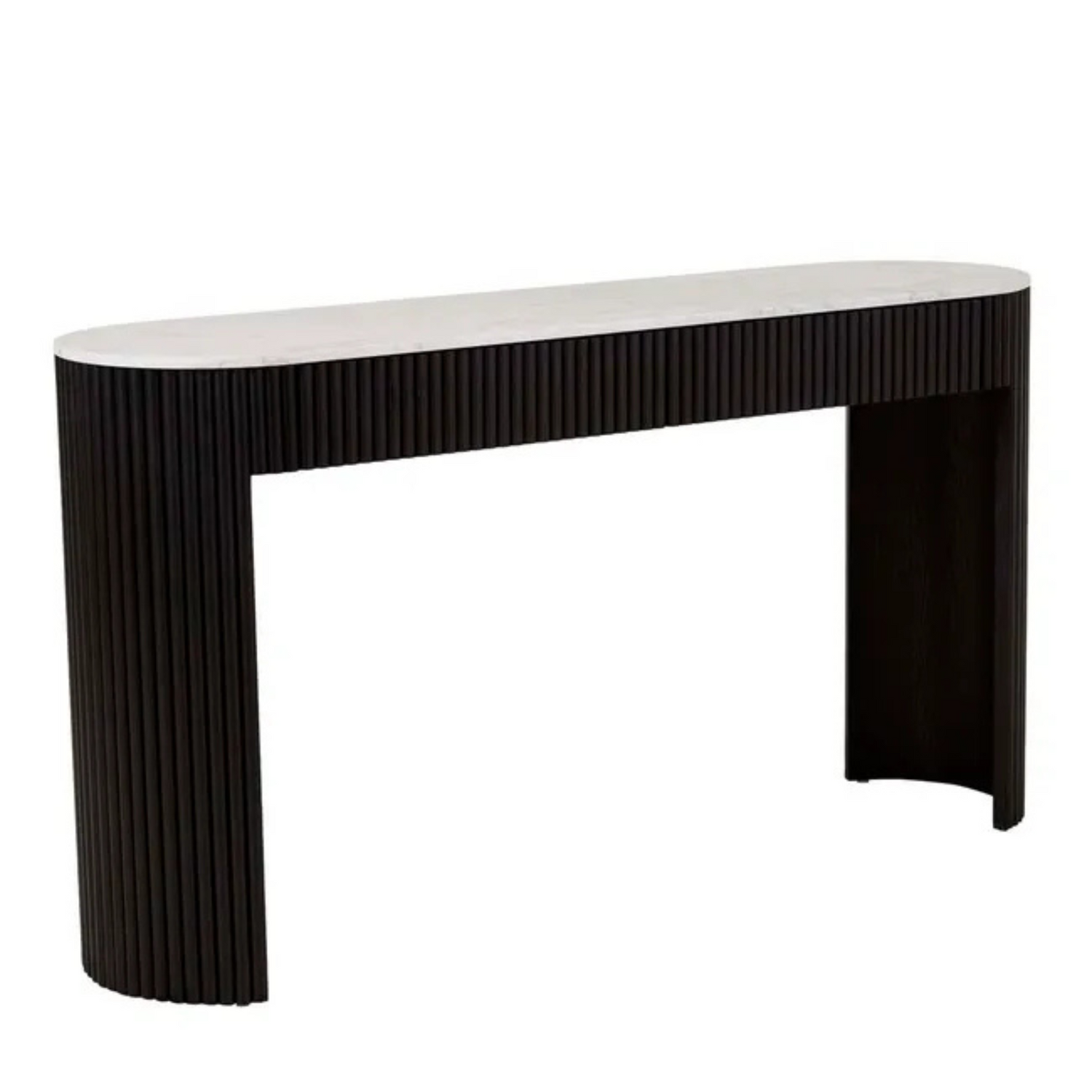 Simple but with statement features the Benjamin Ripple Grand Marble Console Table puts marble on show. A softly curved top and matching legs flow together seamlessly for a minimalist result. Perfect for a contemporary living space, this sleek console table will blend beautifully with existing decor styles.