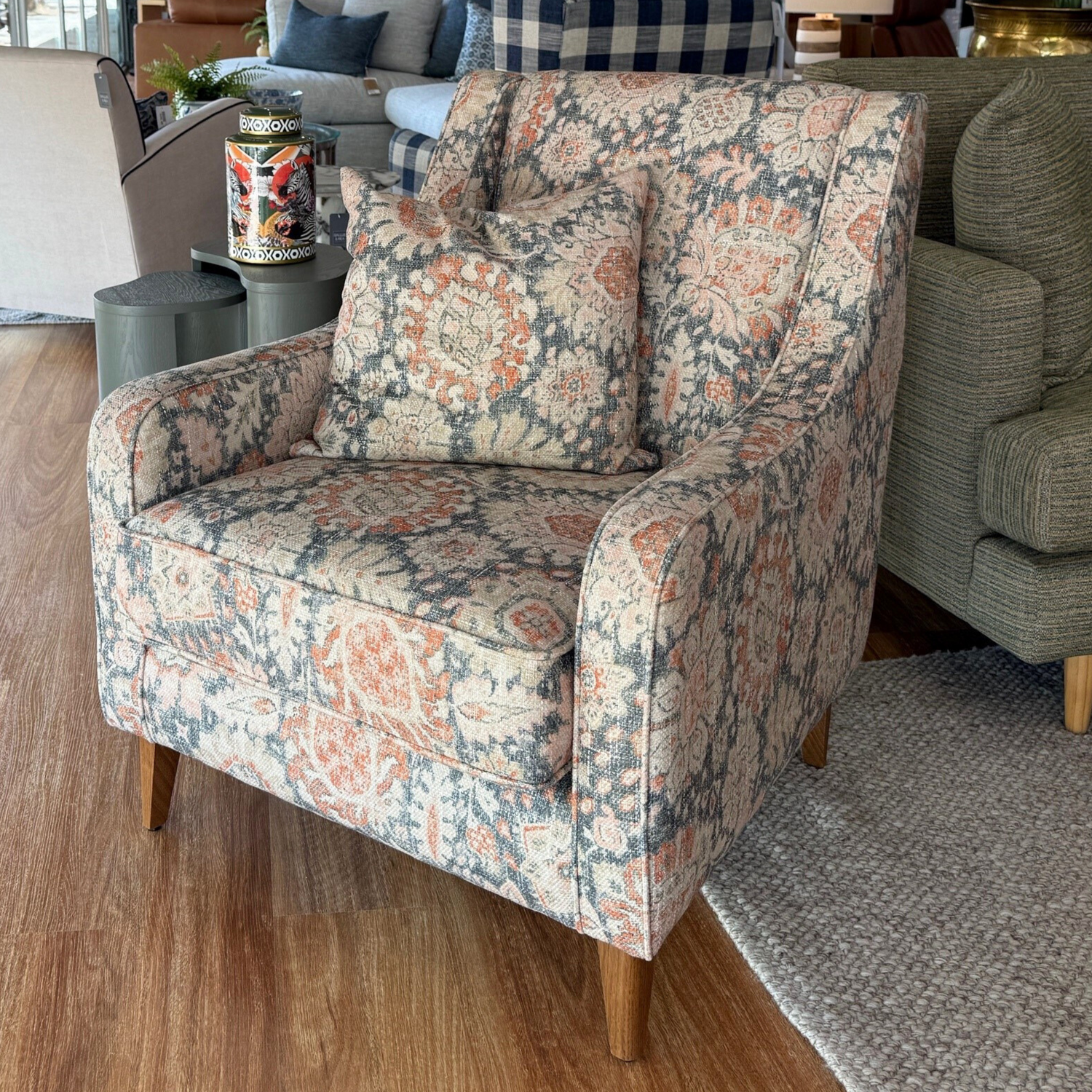 The Kerala Occasional chair has been on display in our showroom. We love and care for our display products as if they were in our own home. Understandably there may be some signs of wear but if there is anything particularly noticeable we will always let you know.