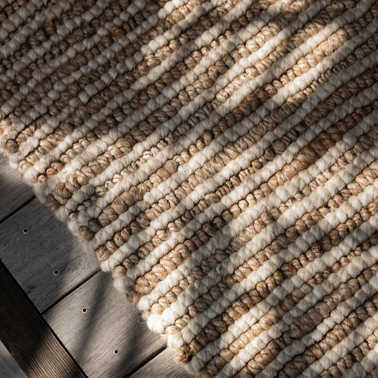 Create a welcoming entrance with this handwoven mat in light sand tones. Crafted from a blend of jute and wool, the design creates visual interest through raw texture and subtle patterning. The robust qualities of jute makes this piece hardwearing and excellent for high-traffic areas.