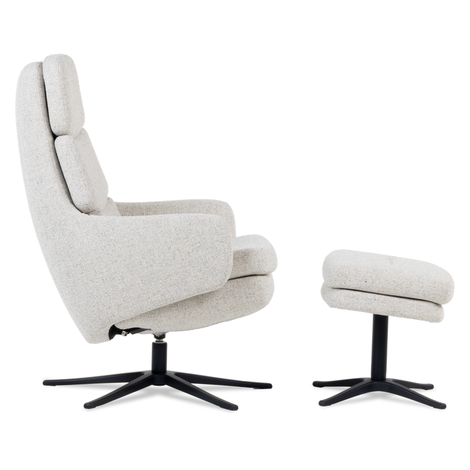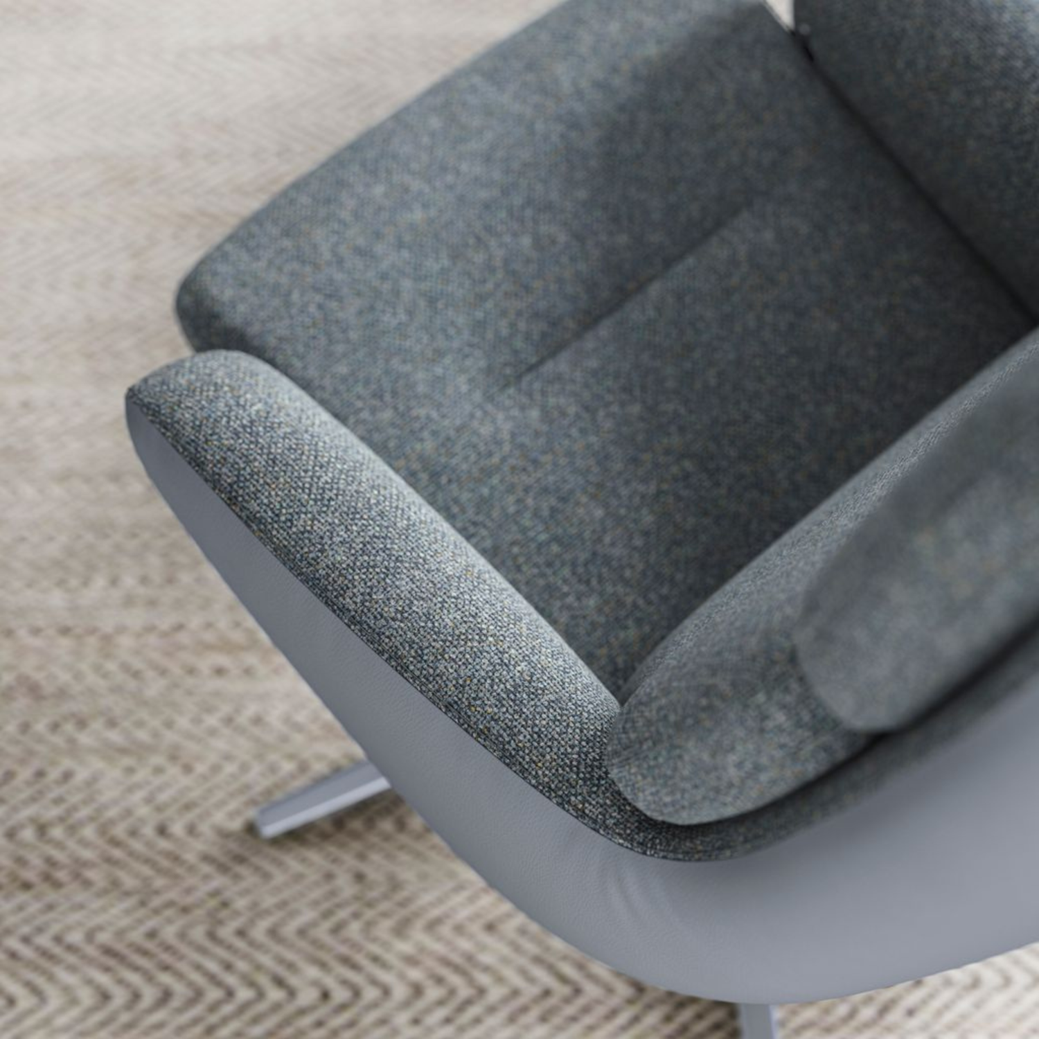 Lyra redefines ergonomic comfort with a sleek, modern form. Its high backrest and segmented cushioning offers tailored support, while the matching ottoman and swivel base invite effortless relaxation. Designed for those who prioritise indulgent comfort, features generous cushioning throughout and a luxurious pillow top on both seat and backrest, perfect for long, relaxed moments. Its soft curves and inviting proportions offer a harmonious blend of style and support, creating a design that feels both timeless and fresh. Built with dependable craftsmanship, Lyra delivers lasting comfort and visual elegance in equal measure.