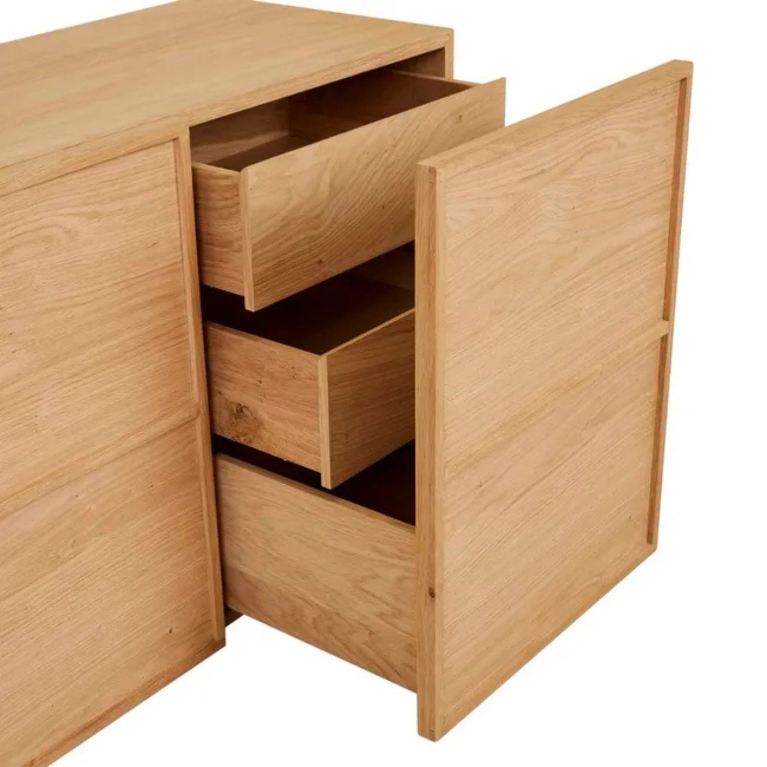 The Marcel Buffet adds a refined touch of modern sophistication to any dining space. With its slimline recessed panel doors and sleek lowline profile, it offers a distinctly European aesthetic. Crafted from rich walnut or oak veneer, this piece exudes luxury while providing ample storage for everyday essentials. Perfect for contemporary interiors, the Marcel Buffet effortlessly blends elegance with practical functionality.