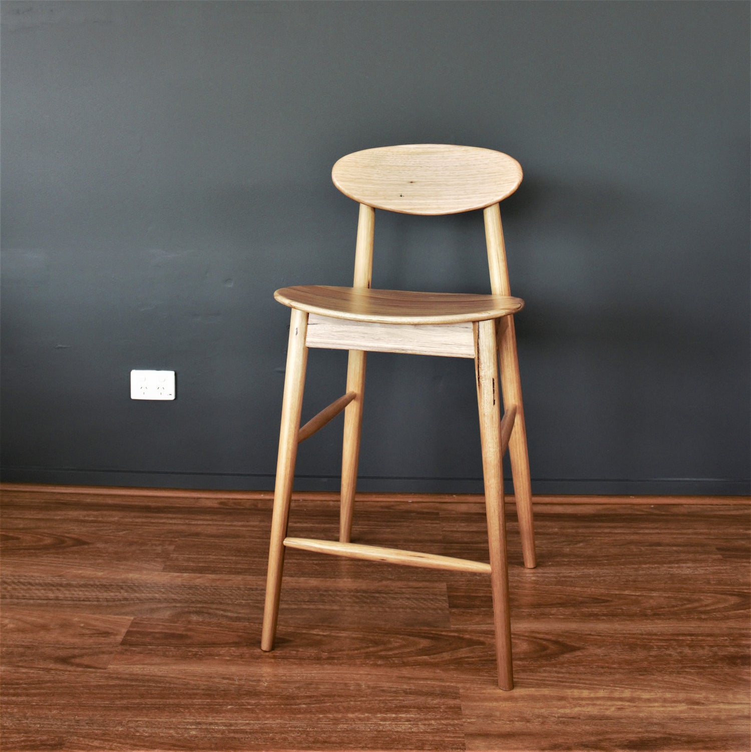 This stool has a solid timber seat. The stool is discontinued and we have just 1 left.